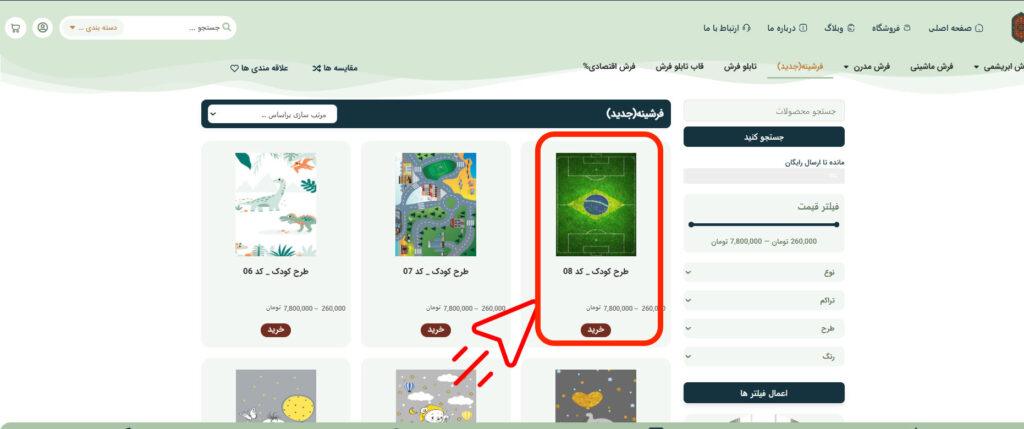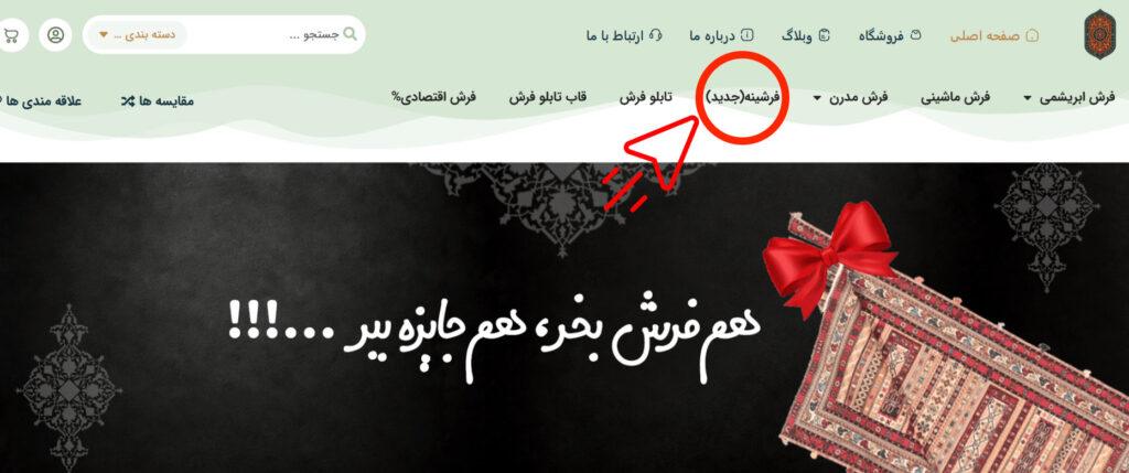 2.از قسمت منو وارد دسته فرشینه ها میشویم