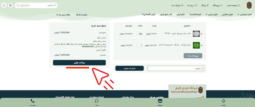 1.ابتدا وارد وبسایت قالیکو میشویم